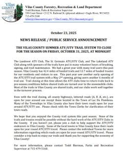 The lucky winners of the St. Germain ATV Club 2025 Cash Raffle which was held on Saturday, September 28 are: